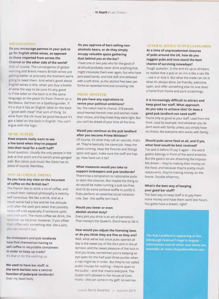 (For the latest issue of Luxury Bed & Breakfast + Innkeeper , click here)